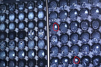 患者高大爷是宜宾珙县人。他在2个多月前出现右侧肢体乏力、活动不灵活、反应迟钝、言语不清、表达困难等症状,并呈加重趋势。患者于7月2日入院。头颅MRI检查提示颅内占位性病变。会诊讨论后决定于7月5日上午进行手术。