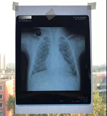 把片子直接贴在窗户玻璃上拍,窗户外面的风景透过片子拍入了照片上,图片的下半部分,可以隐约看到窗户外面的建筑,影响医生阅片,不能获取有价值的磁共振信息。