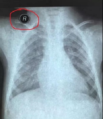 十二、拍摄时,尽可能的将片子上的文字信息拍摄清楚,并将左右拍摄清楚(片子上有标R,表示右侧right,L, 表示左侧left的意思), 每张片子上的文字都能按照阅读习惯拍正确,不要拍反了。