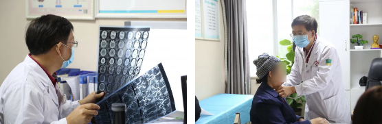 黄光教授与我院一起查房,开展脑科MDT(多学科)联合会诊。对病情进行评估,判断患者是否适合外科微创治疗以及外科治治疗果评估,对症状较轻的患者提供针对性的用药指导,康复医师提供脑科疾病患者的日常行为康复指导。