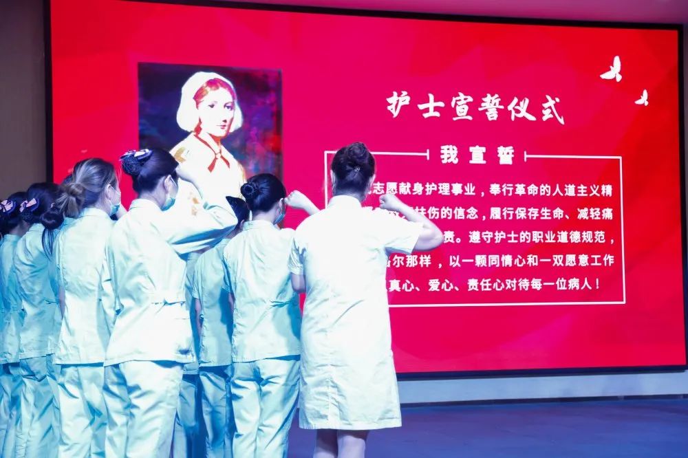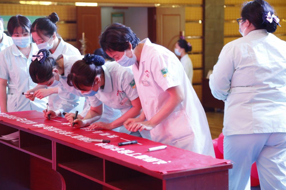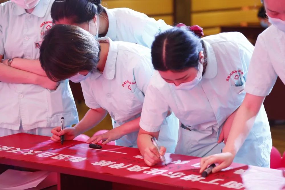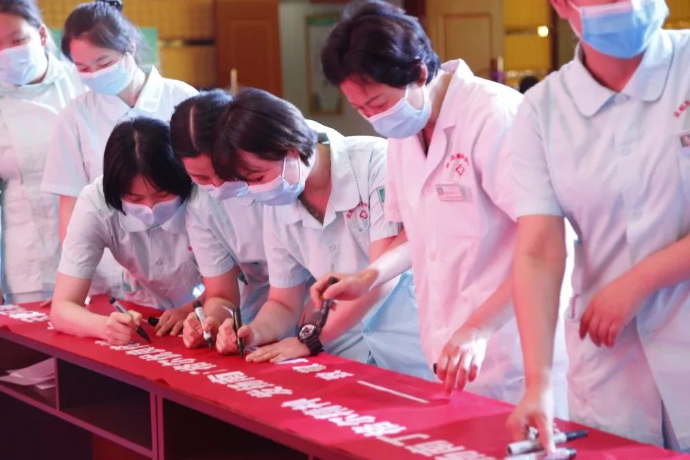 本次活动分为五个部分,在我院业务院长邢雯梅女士致辞后,由护理部王桂芝主任带领20位护士上台宣誓。随后,白衣天使依次上台,在横幅上签下自己的名字,以表达不忘初心、牢记使命的职责担当。优秀护士颁奖结束后,便是激烈的护理知识竞赛。