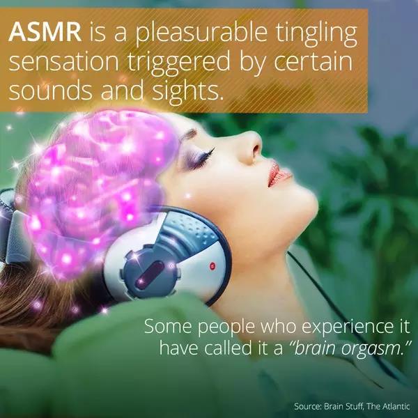 大脑会因为特定的声音而达到高潮,这是一种被称为ASMR的状态。ASMR是一种由互联网上的特定声音和画面诱发的位于头皮上的愉悦的麻刺感,它可以传播至颈部和脊柱,甚至抵达你的四肢,并伴随着一种深度放松的感觉。研究者发现,视频中的低语声、翻书声、剪刀裁剪声,都能诱发ASMR。