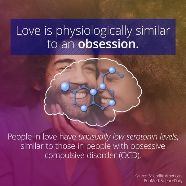 爱情并不是你所想象的一个抽象概念,它与你身体中的许多化学物质有关,比如多巴胺、肾上腺素和去甲肾上腺素。你知道吗?陷入爱河的人大脑的血清素水平与强迫症患者(OCD)一致,也就是说,爱情让一个人像强迫症一样执着和倔强,这就是人们会为爱痴狂的原因。