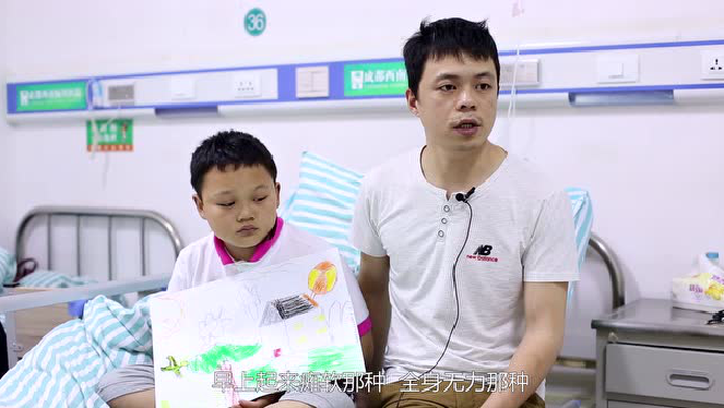 视频中的小男孩叫吕鹏,今年10岁,因为全身瘫软,走路不稳,目前在成都西南脑科医院治疗。吕鹏向我们展示他的画作,有家,有房子,还有树,有风筝,吕鹏说,他画的是以前小时候爸爸妈妈和他一起在家门口放风筝,现在已经好久没有了,自己很想爸爸妈妈再陪着自己一起玩。爸爸在一旁听到也非常心酸,爸爸说现在大的愿望就是把吕鹏健健康康的抚养长大。由于之前一直没有检查出病因,爸爸心里一直没有底,直到把吕鹏送到了成都西南脑科医院,才终于看到了康复的希望。我们也衷心祝愿吕鹏早日好起来,能够再跟爸爸妈妈一起去放风筝。