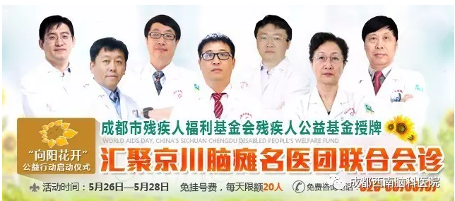 成都西南脑科医院为解决西南地区脑瘫患儿就医问题,特于5月26日、27日、28日(本周五、周六、周日),邀请了北京天坛医院神经内科张小英教授、北京清华大学第二附属医院王世杰博士、原北京康复中心曲树铭教授、解放军(北京)海军总医院尹丰博士、王亚明博士与我院博士级联手针对脑瘫、神经损伤等疾病展开大型会诊活动。