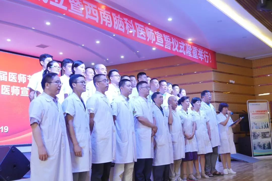 “我是一医生生,我庄严宣誓:我自愿献身医学事业,热爱祖国,忠于人民,恪守医德、遵纪守法,刻苦专研、精益求精。我决心竭尽全力,除人类之病痛……”,铿锵有力的誓词,回荡在成都西南脑科医院三楼会议室。
