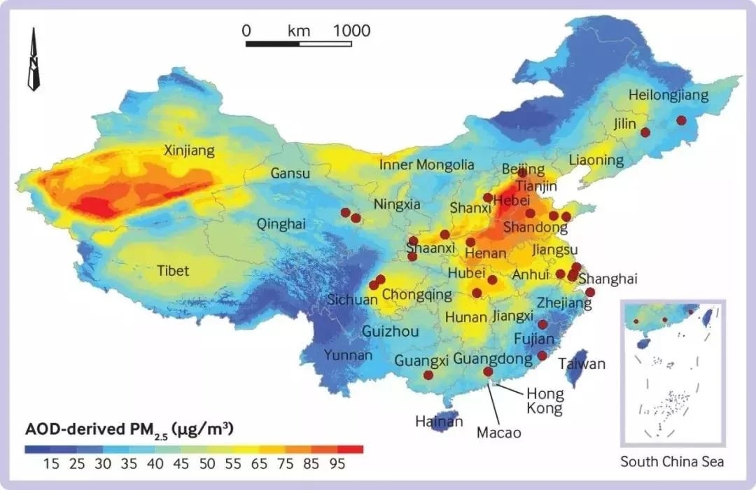 一项覆盖了中国15个省市的研究,纳入了2000年时无中风病史的117,575名中国居民,自2000年开始收集PM2.5数据,结合空气质量监测和卫星数据,以1×1 km为地理单元,每月更新至2015年。