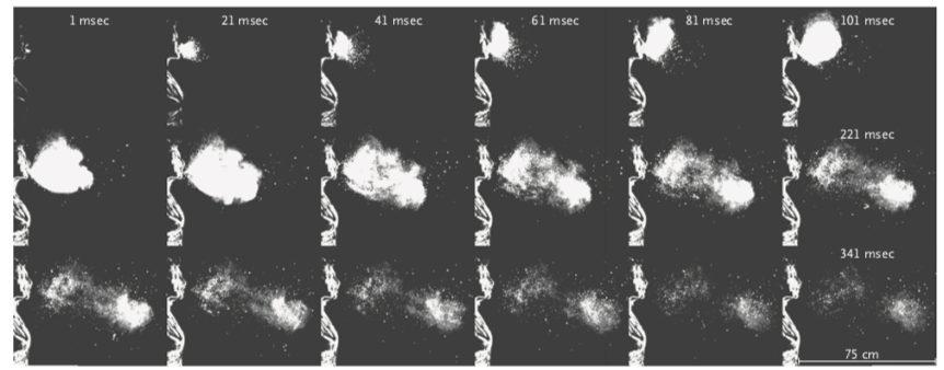 分泌物和异物通过打喷嚏以“湍流”的形态从鼻腔被喷射而出,然后以“云雾”形态向四周蔓延。