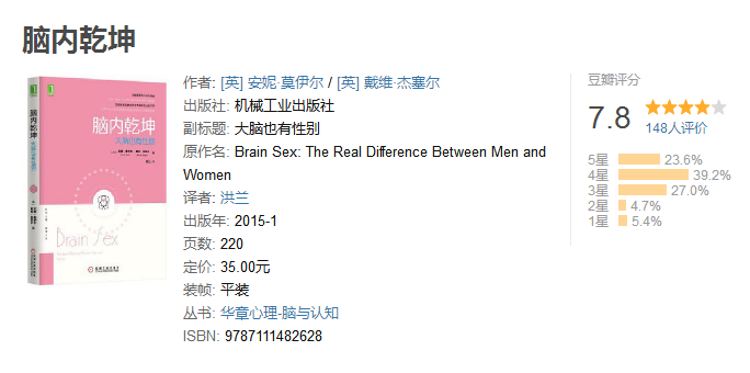 这本书从两性的角度分析了人类的大脑。先有荷尔蒙、再有性别、然后有了不同的大脑,最后才有了性格迥异的两性社会。