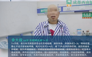 1个多月前,余大叔舌根剧痛、痛到倒地,疼痛持续了2-3s,倒地后不能动,疼痛才能稍许缓解。每天大概发作5~6次,痛了5天之后用药物控制才有所缓解。