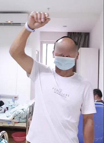 经过治疗,张先生的右手可以轻松抬起,走路也不用搀扶了