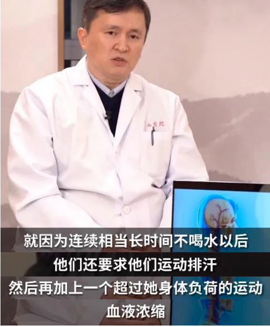 因为准备上台要维持较好状态,结果发生脑梗,在这个病例里,不喝水其实是发病的诱因。普通人群身体的调节功能是正常的,短时间缺水并不会脑梗偏瘫,大家不用担心,但及时补充水分这个建议对于普通人群也是适用的。