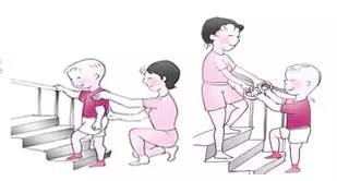 母亲把孩子面部朝前方抱着,一手从腋下穿过,将孩子的身体扶直,另一手托住臀部,可以通过患儿身体的上下移动来诱导其伸出上肢。