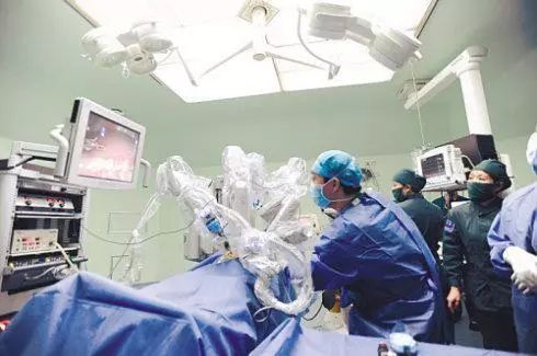 一看到机器人,能立刻联想到的就是高科技。脑立体定向仪,正是目前国际前沿尖端科学与医学结合下的产物。它通过CT或核磁共振融合,在三维空间下由机器人手臂立体定向,在误差低于0.1毫米的精度下,能迅速、精准地利用微电极定位帕金森患者脑内震颤和僵硬细胞的准确位置。再通过监测细胞水平信号,用一根比头发丝还要细的导针进行准确的神经损毁修复,同时直接输入神经细胞因子修复受损多巴胺能神经元,达到临床功能性的恢复、生活自理的目的。