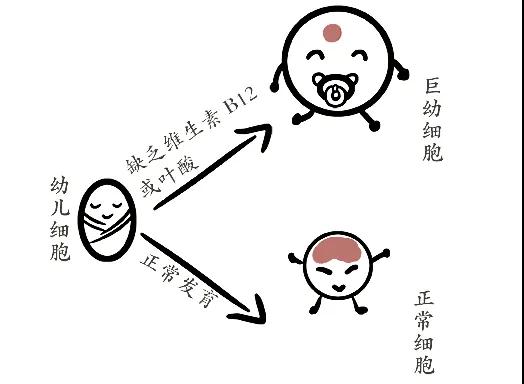 相信大家对巨婴这个词并不陌生,巨幼细胞就是细胞界的“巨婴”。它们在造血细胞还是嗷嗷待哺的幼稚细胞时,由于维生素B12或叶酸的缺乏,影响了DNA的合成,导致细胞发育异常。