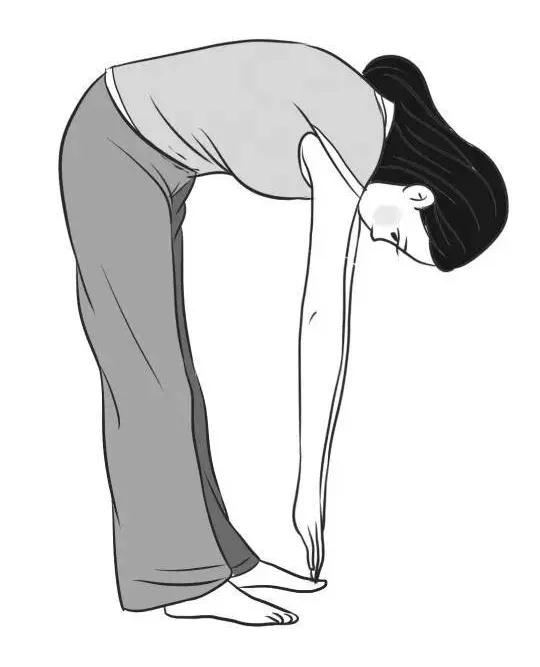 双腿并拢站直,上身前屈,手指尖尽量去够脚趾头,可以够到说明柔韧性还不错;如果手掌能放到地上,说明柔韧性很好;如果手掌到了膝关节处就下不去了,那身体就太僵硬了。