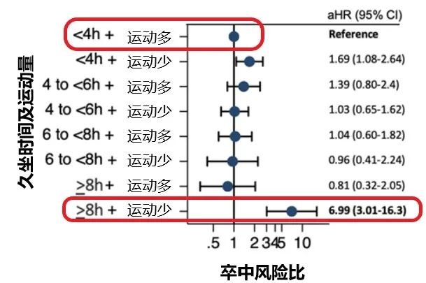 国外一项研究指出:60岁以下人群中,每天坐8个小时还不运动的人,脑卒中的风险比每天运动至少10分钟且不久坐的人要高出7倍。同时,那些每日运动至少10分钟且久坐时长不到4小时的人,脑卒中风险要比8小时还不运动的人低7倍。